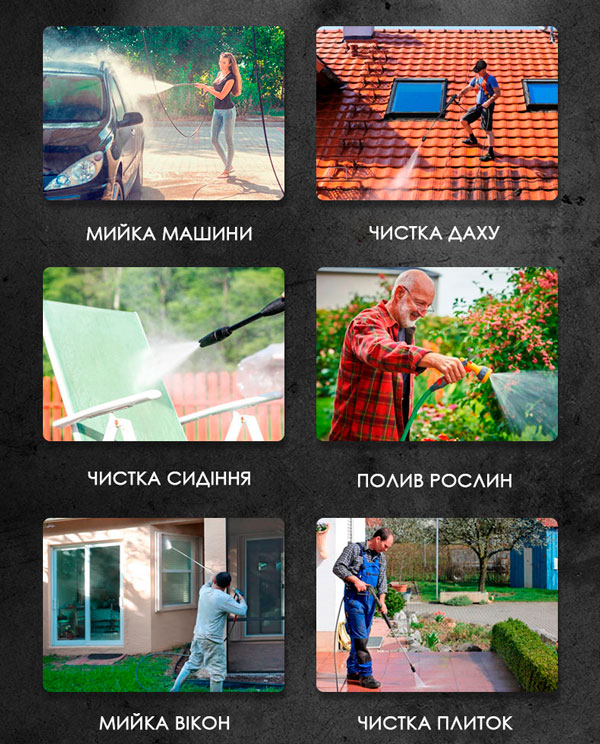 Цей інструмент здатний також полити цілий сад та якісно помити вікна Вашого будинку.
