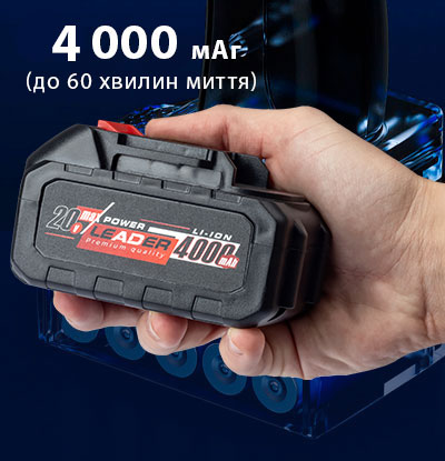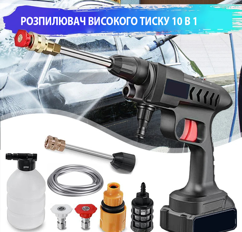 Він легко поміщається у багажнику вашої автівки, швидко заряджається та безперебійно працює до 60 хвилин на максимальної потужності. З ним, Ви зможете помити свою машину на дачі, у дворі, на природі та ін.